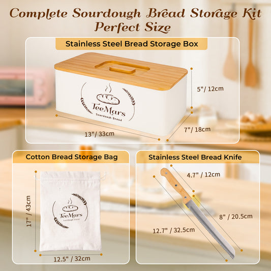 TeeMars Bread Box Kit for Kitchen Countertop - Stainless Steel Bread Storage Box (3PCS)