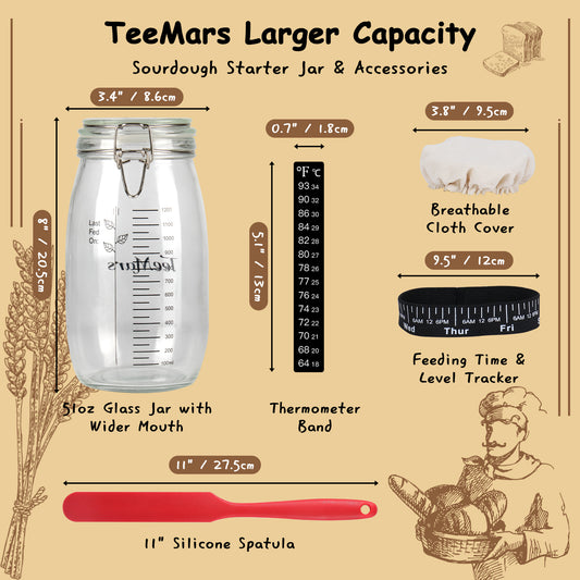 TeeMars Sourdough Starter Kit - 1500ml Sourdough Jar