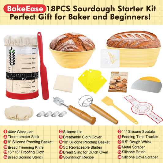 TeeMars BakeEase Sourdough Starter Kit - Durable Complete Sourdough Bread Baking Supplies (18PCS)