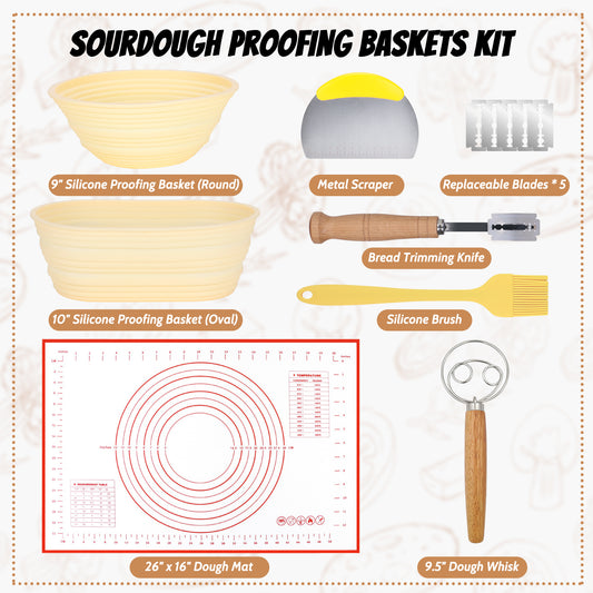 (Year-End Special) TeeMars Sourdough Bread Proofing Baskets Kit - Sourdough Bread Baking Supplies